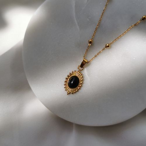 i zawieszką z czarnym onyksem.