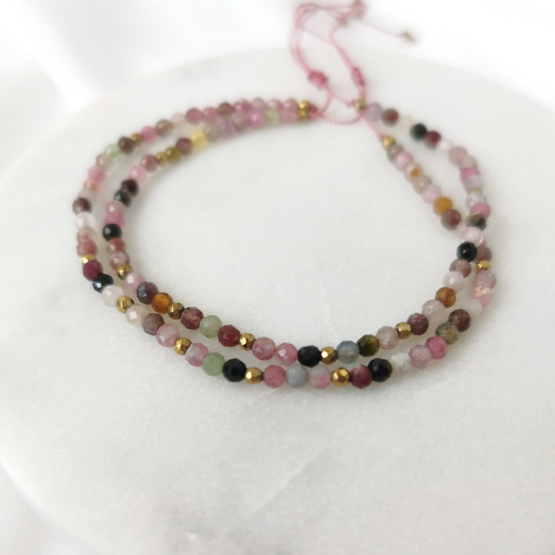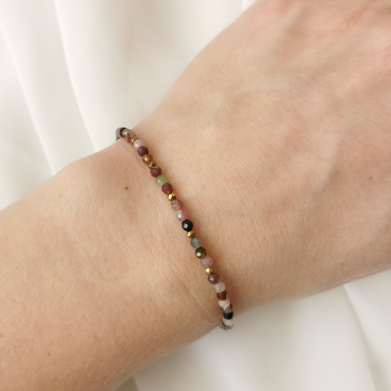 Delikatna bransoletka wykonana z drobnych kamieni naturalnych (w tym przypadku kolorowych turmalinów)