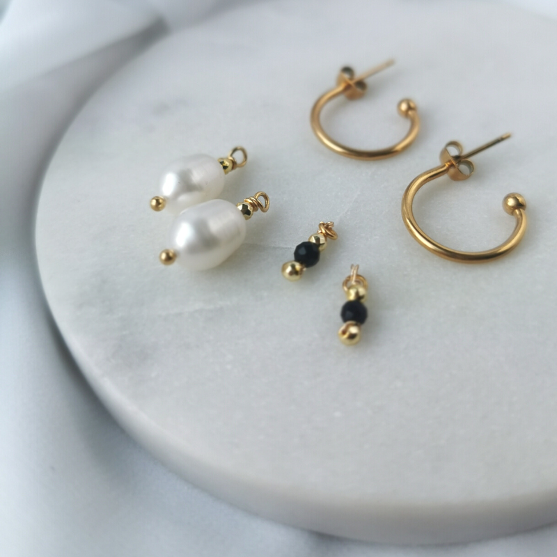 zawiesiłam perłę i drobniutki czarny spinel.