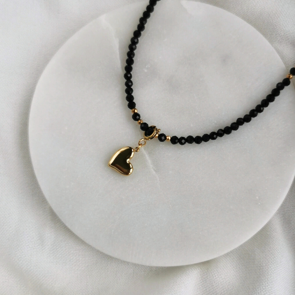Ręcznie robiony naszyjnik z fasetowanych kuleczek czarnego turmalinu